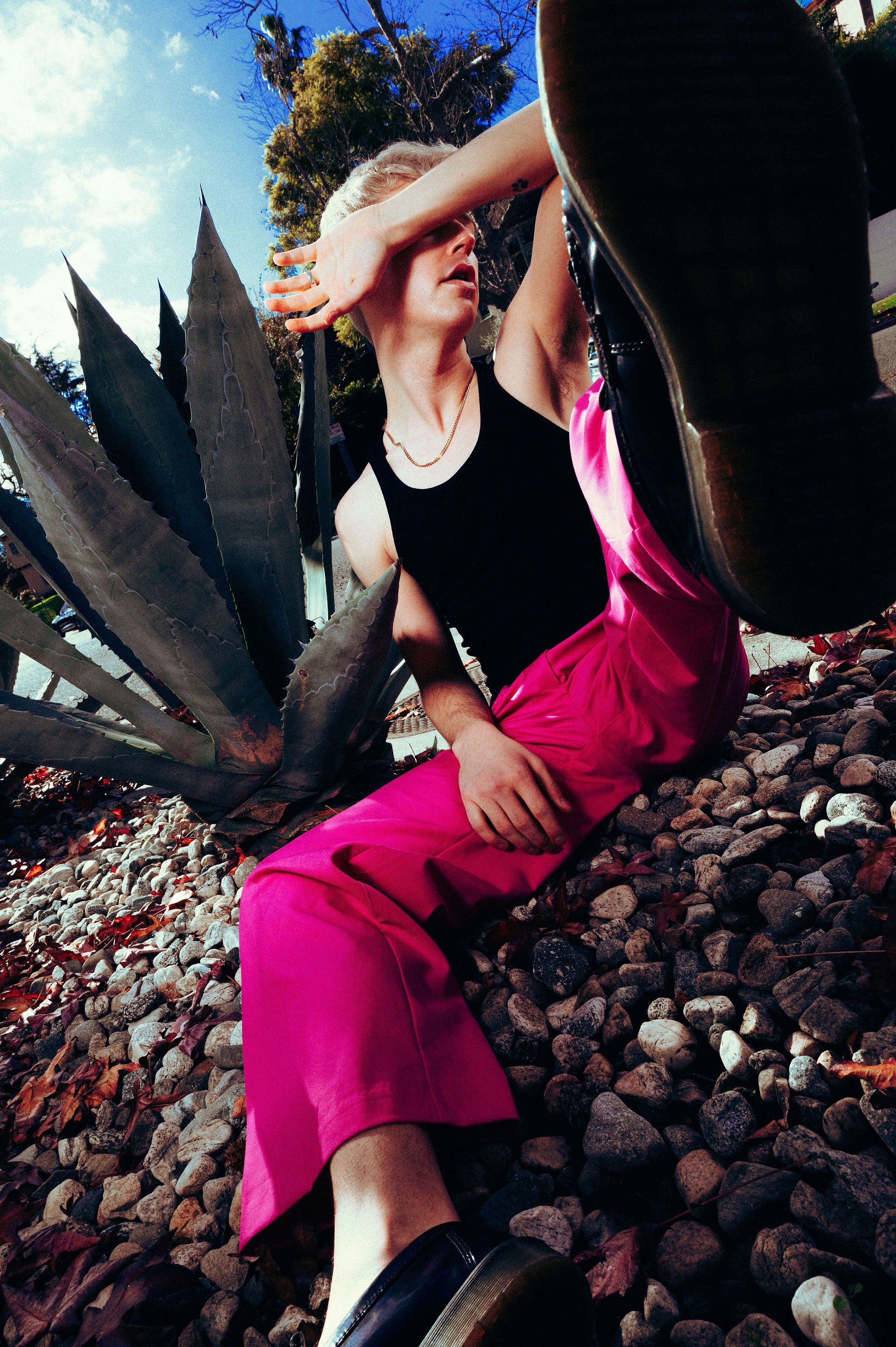 5 mins into the shoot someone turns on their front lawn sprinklers lmfaooo