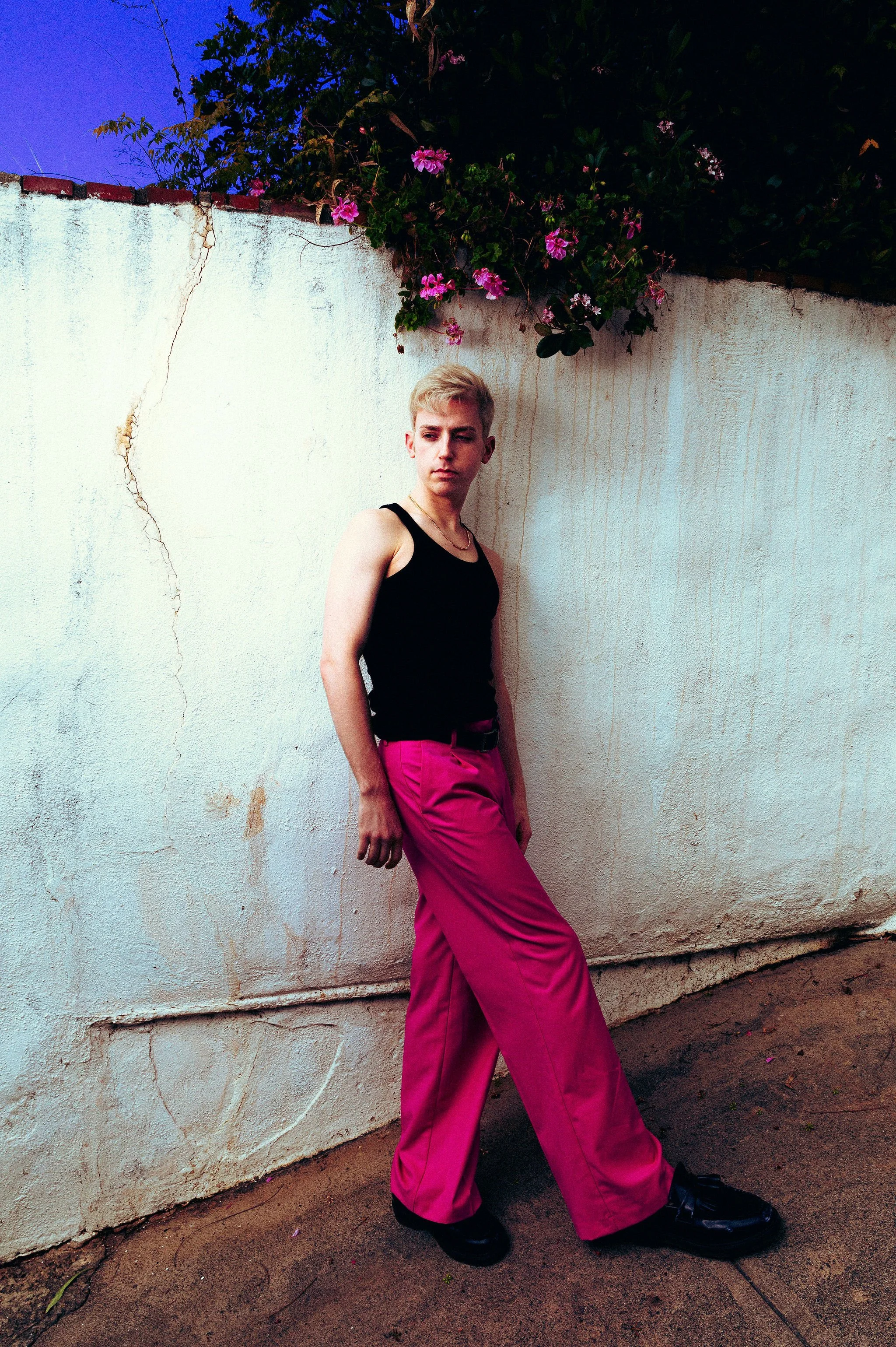 I drive to him on shoot day and we decide to walk around a nearby neighborhood